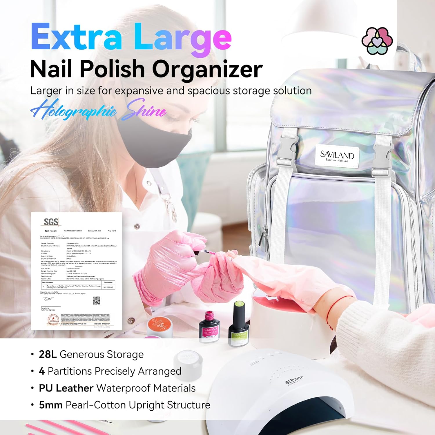 Saviland 70-Bottle Nail Storage Organizer – Holographic Collection