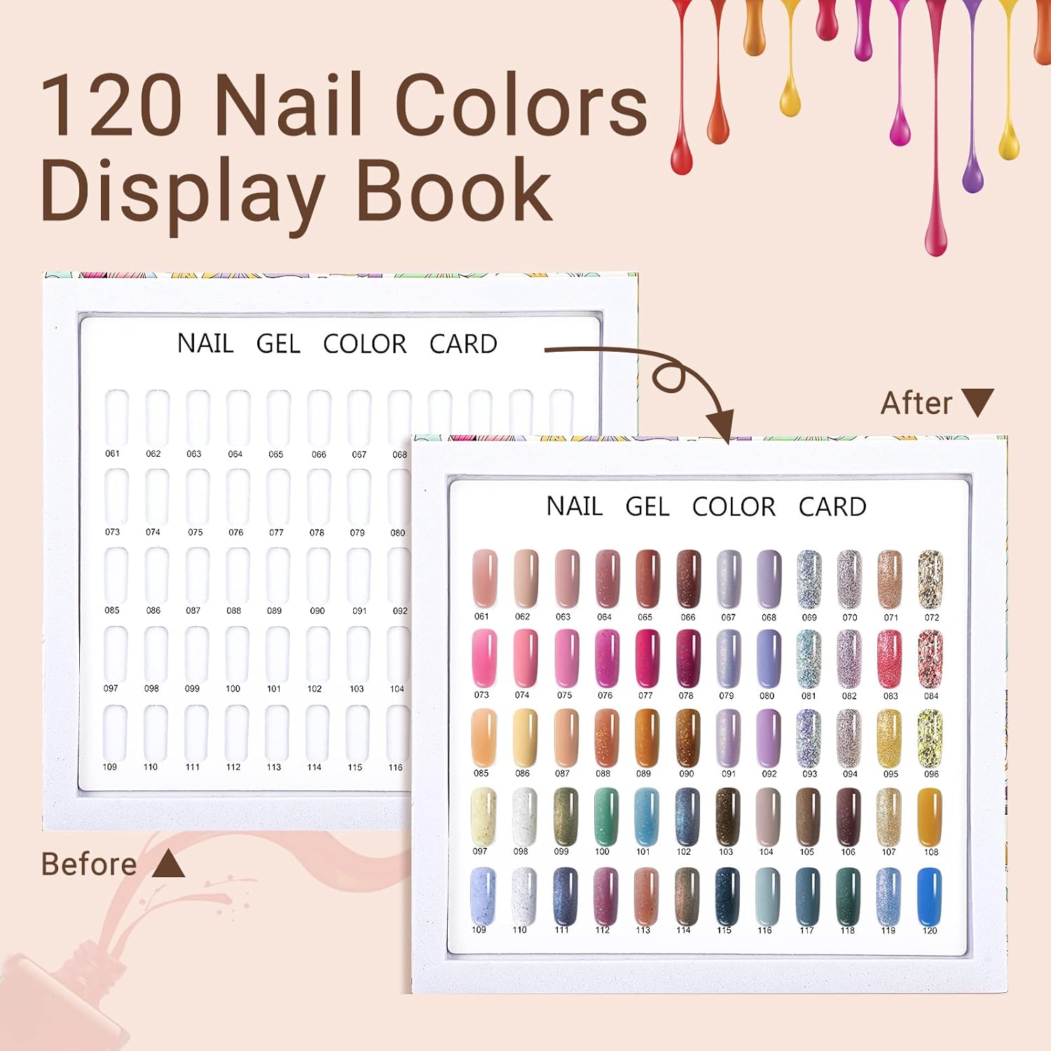Segbeauty 120 Nail Colors Chart Display, Nail Polish Organizer Swatches Cardboard with 120 False Nail Tips, Salon Nail Gel Polish Color Card Book Nail Swatch Stick Nail Supplies Showing Board Tool