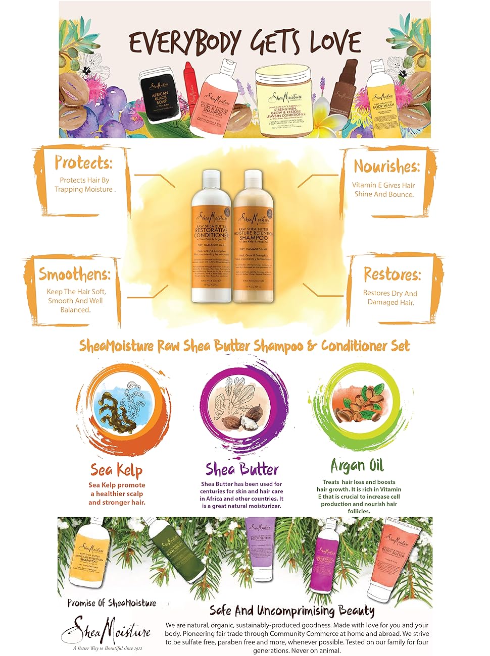 SheaMoisture Raw Shea Butter Shampoo & Conditioner Set | 16 fl. oz. Shampoo | 16 fl. oz. Conditioner