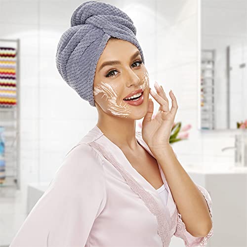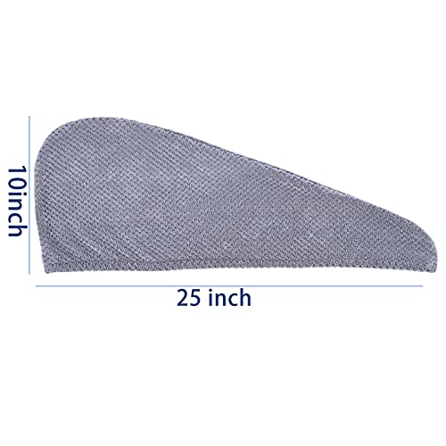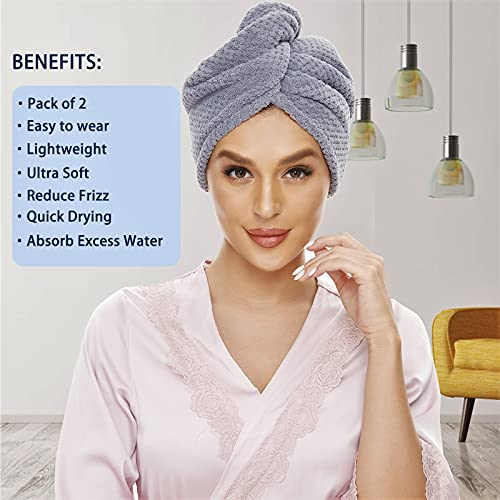 SimpleField Microfiber Hair Towel Wrap, Pack of 2 Quick Drying Hair Turban for Wet Hair, Absorbent, AntiFrizz Hair Care Accessory. (Grey)