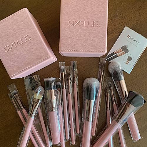 SIXPLUS 15Pcs Pink Makeup Brush Set with Makeup Holder (Pink)