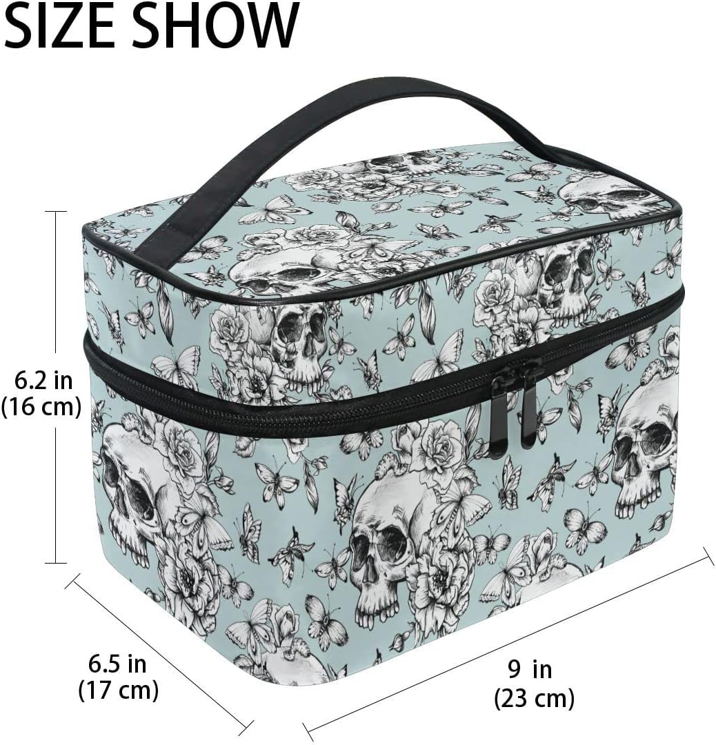 Skull Makeup Bag, Vintage Goth Skull Butterfly Makeup Organizer Bags Toiletry Bag Box Travel Cosmetic Bag Make Up Train Case for Women Teen Girl Ladies