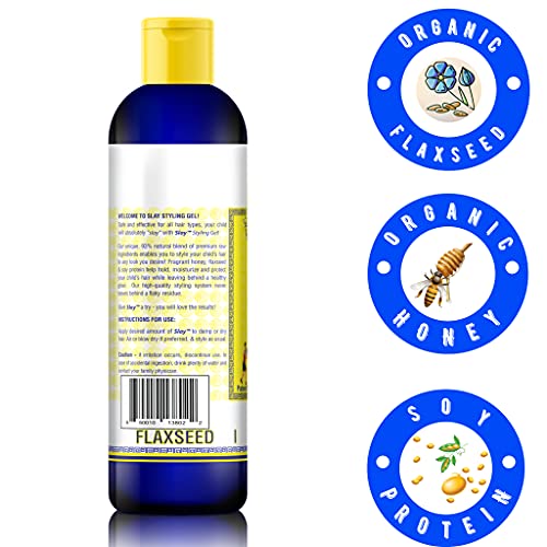 Slay All Natural Hair Gel for Kids | Light Hold | Chemical Free | Made with Organic Honey, Flaxseed and Vitamins | Safe on Babies, Toddlers, Men and Women | Awesome Styling and Flexibility for Boys and Girls | Paraben, Sulfate & Gluten Free | Never Sticky | Made in USA (1 Unit) (Large, 8 oz Hair Gel for Kids)