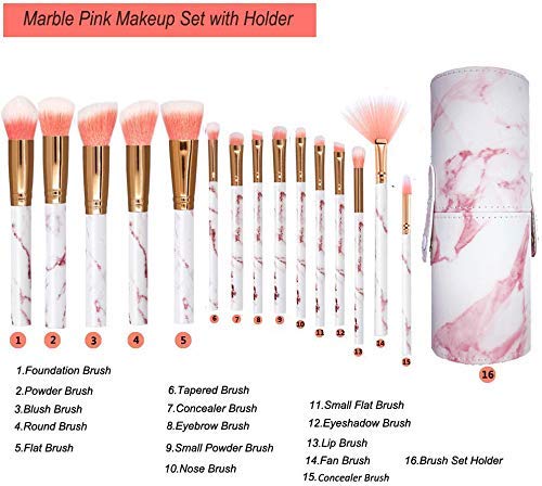 Stylish Marble Makeup Brushes 15 Piece With Holder Pot NEVSETPO Girls Makeup Full Face Makeup Kits for Foundation Powder Blush Eyeshadow Concealer Lip