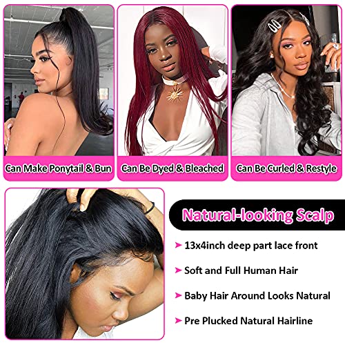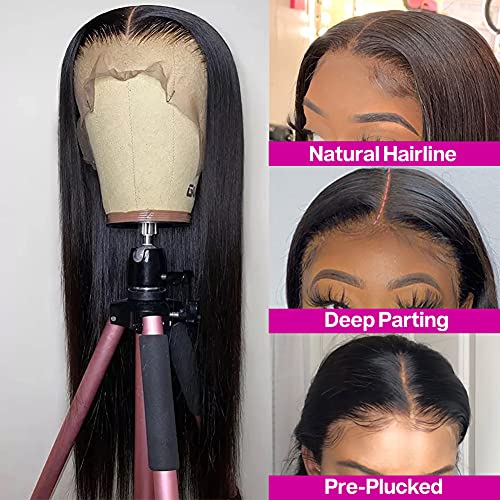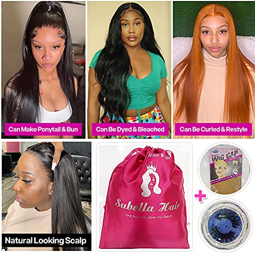 Subella Hair 180% Density Lace Front Wigs Human Hair with Baby Hair 13x4inch Brazilian Straight Virgin Human Hair Glueless Straight Wigs for Black Women Human Hair Natural Color (24inch)