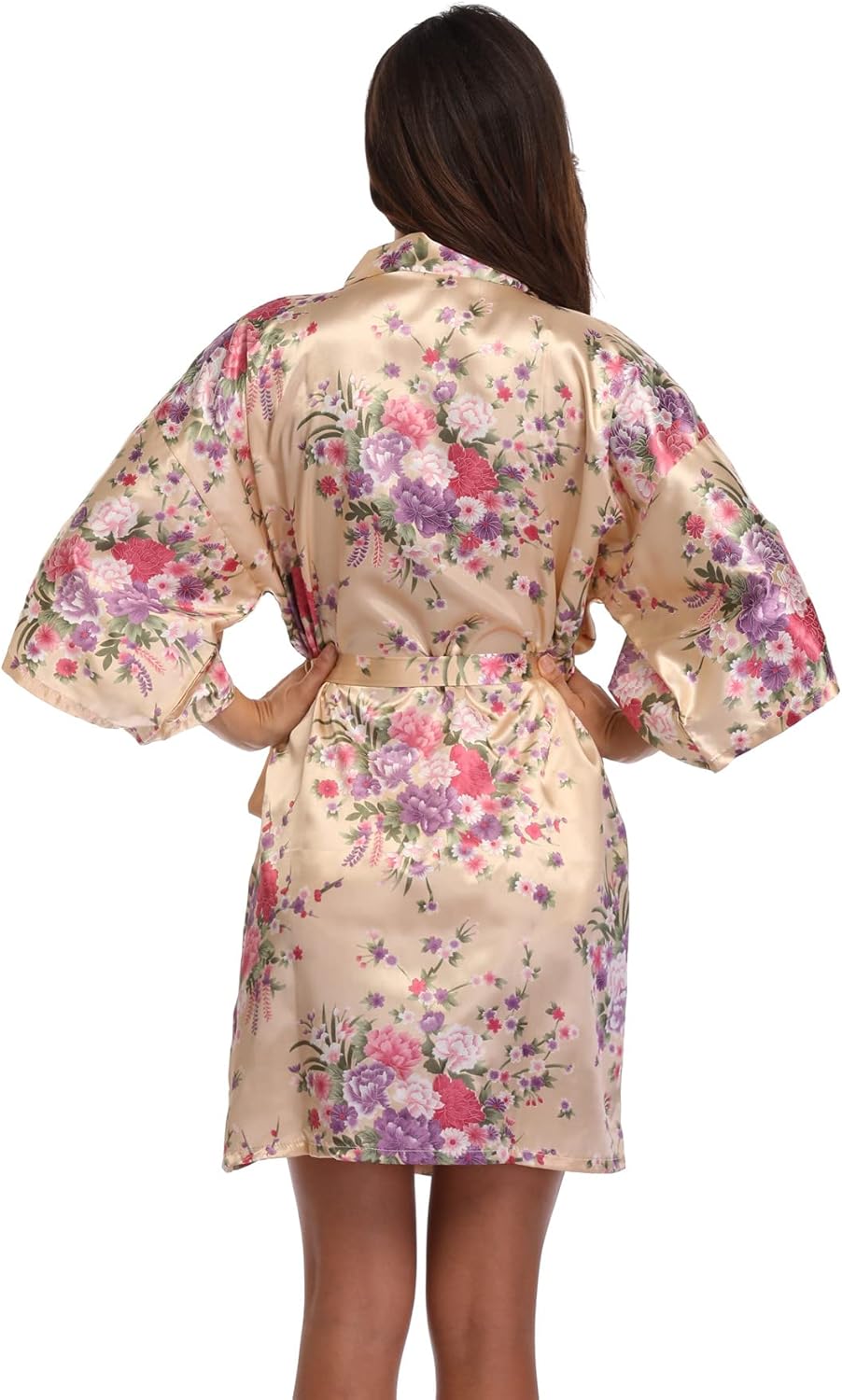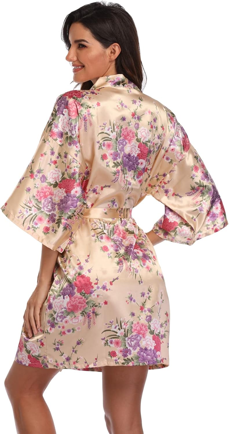 Super Shopping-zone Women’s Floral Short Satin Bridesmaid Robes Silky Bride Robes Getting Ready