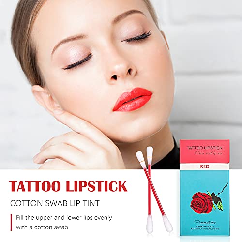 Tattoo Lipstick Cigarette Cotton Swab Lipstick and Lip Gloss Makeup Waterproof Liquid Non-Stick With Cigarette Box (Red)
