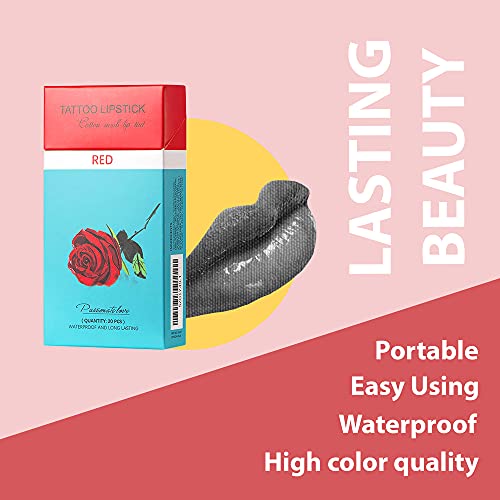 Tattoo Lipstick, Tattoo Lipstick Cotton Swab, 20 PCS Better Me Lipstick, Durable Waterproof Liquid Non-Stick Tattoo Lipstick, Disposable Lipstick, Cigarette Lipstick Cotton Swabs