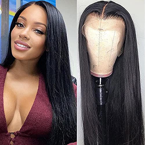 Teotuli Straight Lace Front Wigs Human Hair 150% Density 9A 13×4 Brazilian Straight Human Hair Lace Frontal Wig with Baby Hair for Black Women Pre Plucked (20 inch)