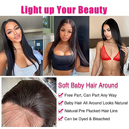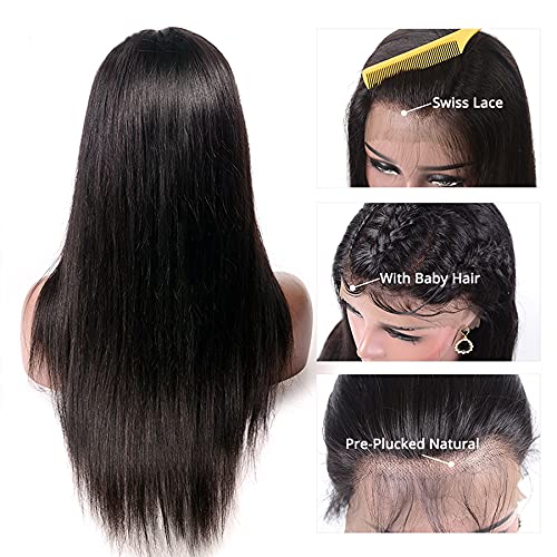 ❤【Lace frontal】:13X4 straight Lace Front Wigs Human Hair, Swiss Lace and Hand-Crafted , natural color and Medium Size Cap(22-22.5 inch) and 3 combs with two Adjustable Straps, More Comfortable To Wear.