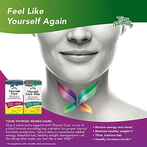 Terry Naturally Thyroid Care – Iodine + L-Tyrosine, 120 Capsules – Thyroid Support Supplement, Promotes Energy, Metabolism & Lustrous Hair – Non-GMO, Gluten-Free, Kosher – 60 Servings