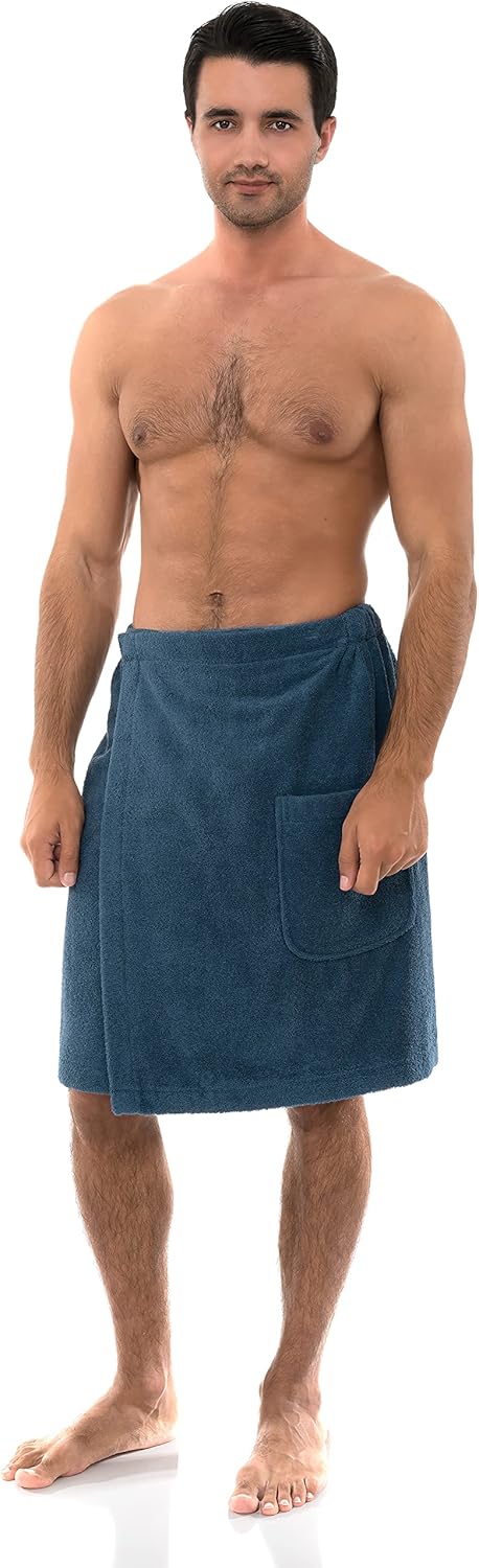 TowelSelections Mens Shower Wrap Adjustable Cotton Terry Bath Gym Cover Up with Snaps