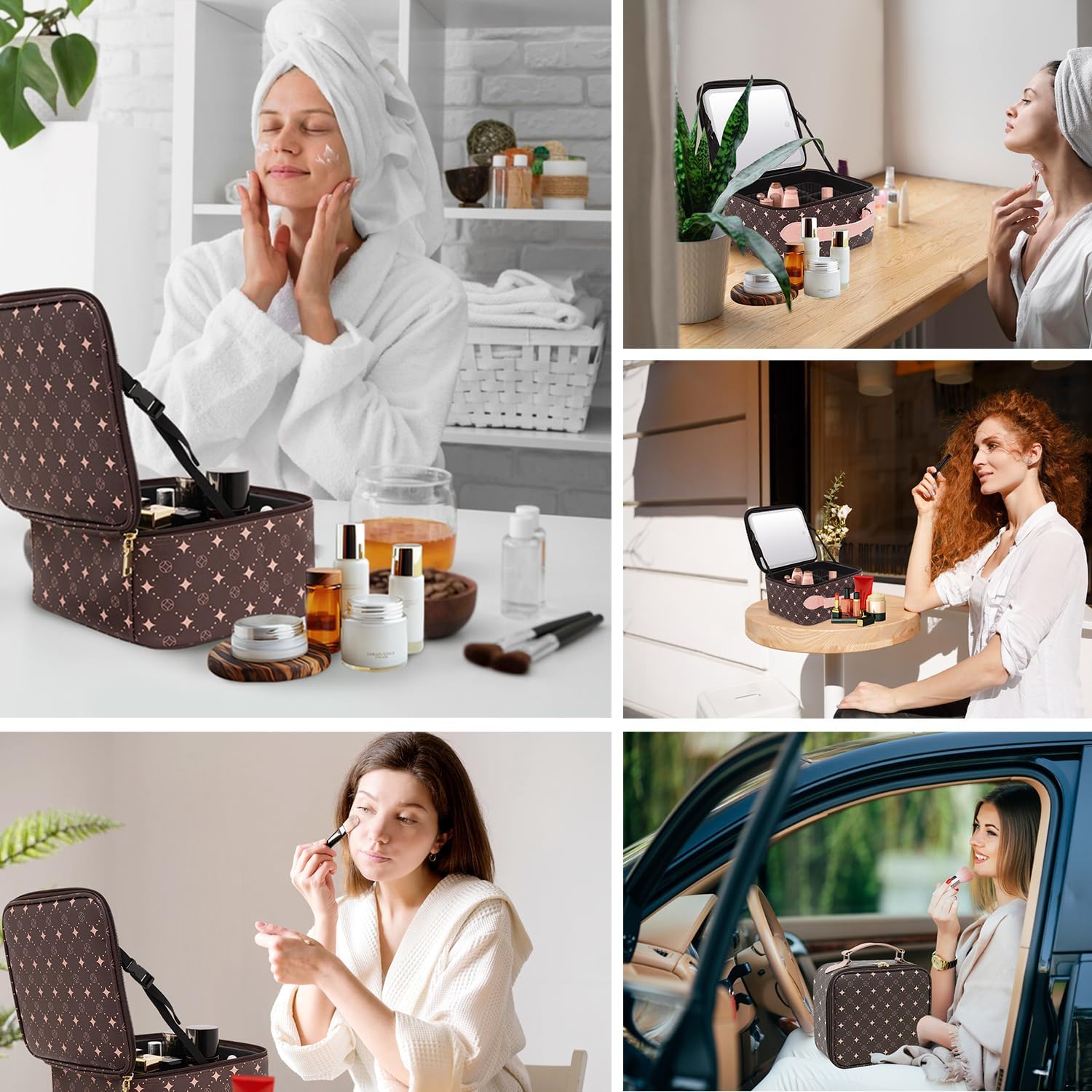 ADJUSTABLE DIVIDERS: The inner layer of the cosmetic case is designed with adjustable dividers, you can flexibly adjust the position of the dividers according to the size and shape of different cosmetics. This not only keeps your cosmetics organized, but also maximizes the use of case space.