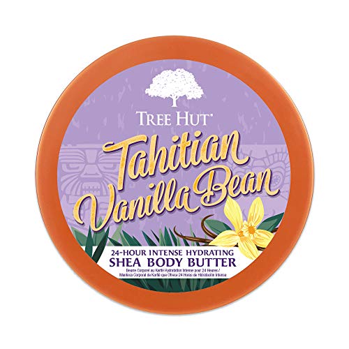 Banish extra-dry skin and give it ample hydration with the warm tropic scent Tahitian Vanilla Bean in a 24-Hour Intense Hydrating Shea Body Butter. Made with ultra-rich ingredients like Monoi Oil, Vanilla, Shea Butter and Cocoa Butter to revive and nourish. This luxurious, hydrator features a rich, buttery formula that is ideal to deeply hydrate dull, extra-dry skin, especially elbows, knees, and heels. It provides long-lasting hydration for up to 24 hours to leave skin feeling soft, smooth and glowing. Monoi Oil features a blend of sun-soaked Tahitian Tiare Flowers in Coconut Oil known to help moisturize and soften skin while also helping to improve skin elasticity. Vanilla is known to calm and soothe skin. Natural Shea Butter is known to deeply moisturize, nourish and soften dry, skin while helping to promote elasticity. Add an extra helping hand with rich Cocoa Butter that also helps to hydrate, nourish and boost skin elasticity. Leave skin feeling super quenched with long-lasting hydrating and a radiant glow. Tree Hut Tahitian Vanilla Bean 24 Hour Intense Hydrating Shea Body Butter is paraben free, sulfate free, alcohol free, contains no formaldehyde donors, has a rich, buttery formula and long-lasting fragrance.