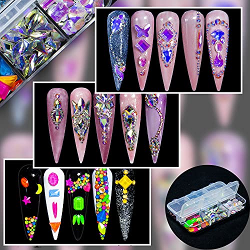 U-Shinein Nail Rhinestones Kit, 1000pcs Crystal AB Rhinestones for Nails, Nail Crystal Glass Rhinestones Decoration Nail Gems Diamond Multi Shapes Nail Art Crafts DIY Professional – Box 01