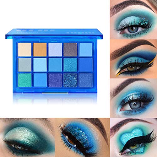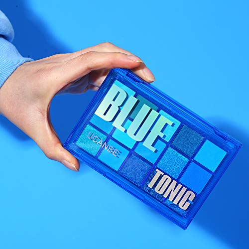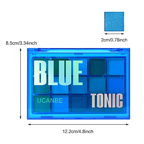 UCANBE Bright Neon Eyeshadow Makeup Palette-15 Shades High Pigmented Purple Blue Yellow Shimmer Matte Glitter Metallic Eyes Shadow Colorful Vibrant Creamy Make Up Pallets Kit (Blue Tonic)