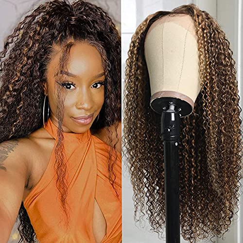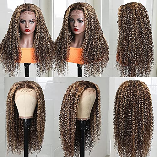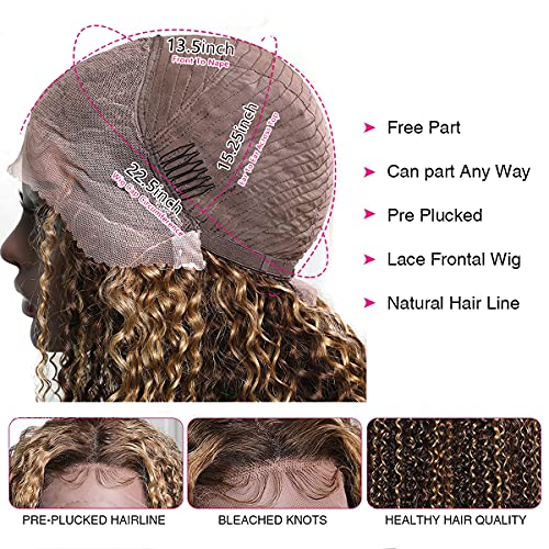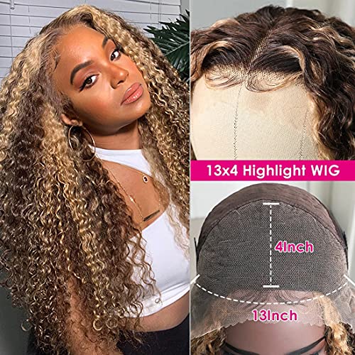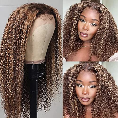 UNICE Curly Honey Blonde Lace Front Wigs Human Hair, Ombre Highlight 13×4 Lace Frontal Wigs Pre Plucked with Baby Hair for Black Women, 10A Brazilian Remy Hair Colored Wig TL412 150% Density 24 inch