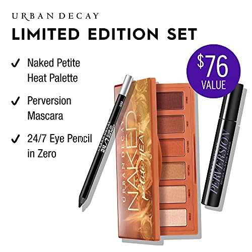 Urban Decay Eye Makeup Set – Naked Petite Heat Eyeshadow Palette + Perversion Volumizing Mascara + 24/7 Glide-On Waterproof Eyeliner Pencil