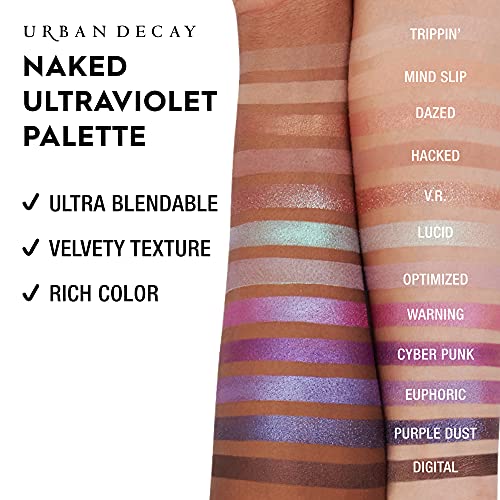 YOU LOOK BETTER NAKED – Naked Ultraviolet Eyeshadow Palette features 12 vivid purple and peachy neutrals ranging from satins & mattes to shimmers & metallics, including a holographic pearl transformer shade, that look good on everyone.