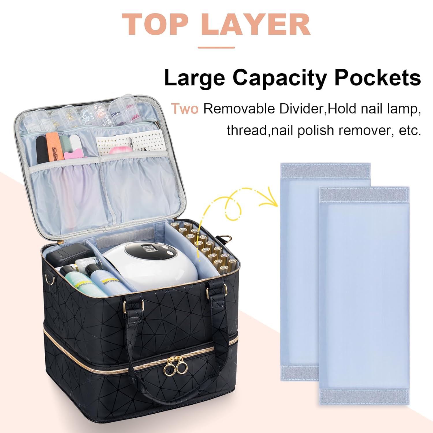 Uross Nail Polish Organizer Bag Holds 84 Bottles Nail Polish & Nail Lamp, Large Gel Nail Polish Organizers and Storage box for Nail Tech, Nail Kit Supplies Organizer Case-Black