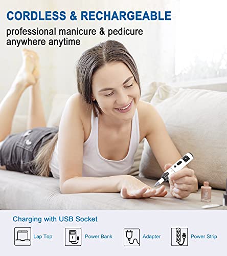 USECRET Professional Manicure Pedicure Kits,8 Speeds Cordless Electric Nail Drill Kit, Electric Nail Grinder For Hand Foot Care, Nail File Trim Polish,Remove Cuticles,Callus&Thick Toenails,10 Bits