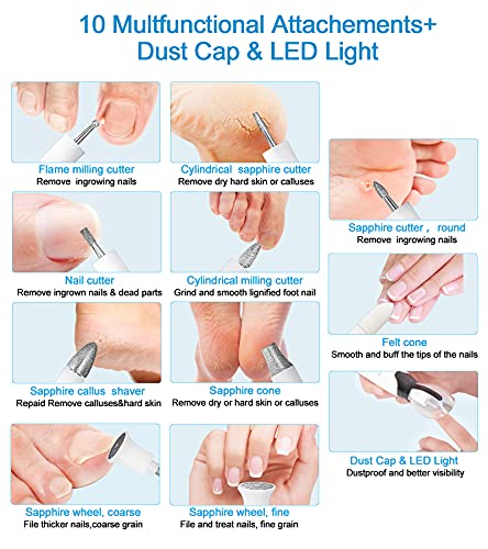 Led light makes it easier to see what you’re doing. They also protect your face, eyes, and even the drill from coarse particles.Brightens the grooming area to help you see each part really well and achieve a precise and safe finger and toe nail care