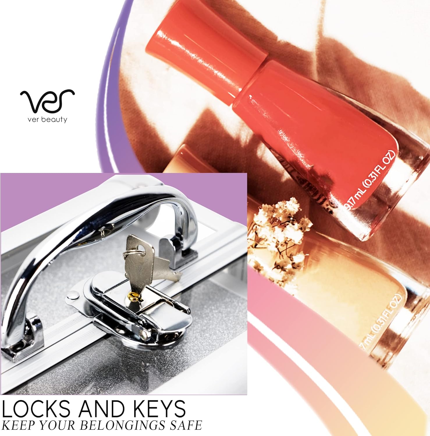 Elevate your beauty routine with the ultimate VER Beauty makeup case, featuring a spacious bottom compartment standing at a generous 3.5 inches tall. Perfectly designed to house your nail polish collections, compacts, and other lofty beauty treasures, this compartment redefines organization. Say goodbye to clutter and hello to a world where every item has its place, ready for daily use or your next glamorous getaway.
