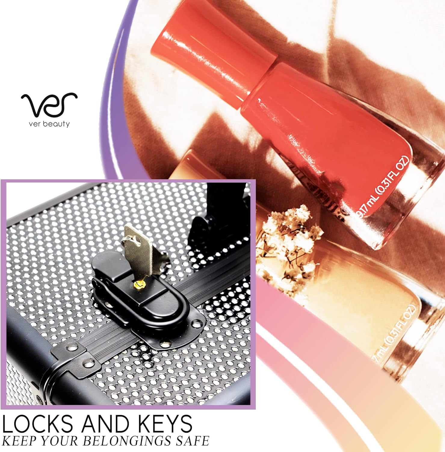 VER BEAUTY Essential Pro Makeup Train Case with Key Locks Perfect for travel This makeup case is the perfect accessory for storing your cosmetics, makeup, accessories and more Storage solution for Beauty Essentials Cosmetic Case with 2 Brush Holders