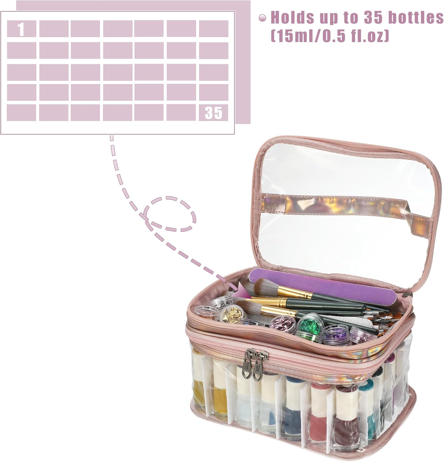 VOCOSTE Nail Polish Bag, Nail Polish Carrying Case Holds 35 Bottles, Nail Art Set Organizer, Travel Storage Bag for Nail Polish and Manicure Accessories, Pink