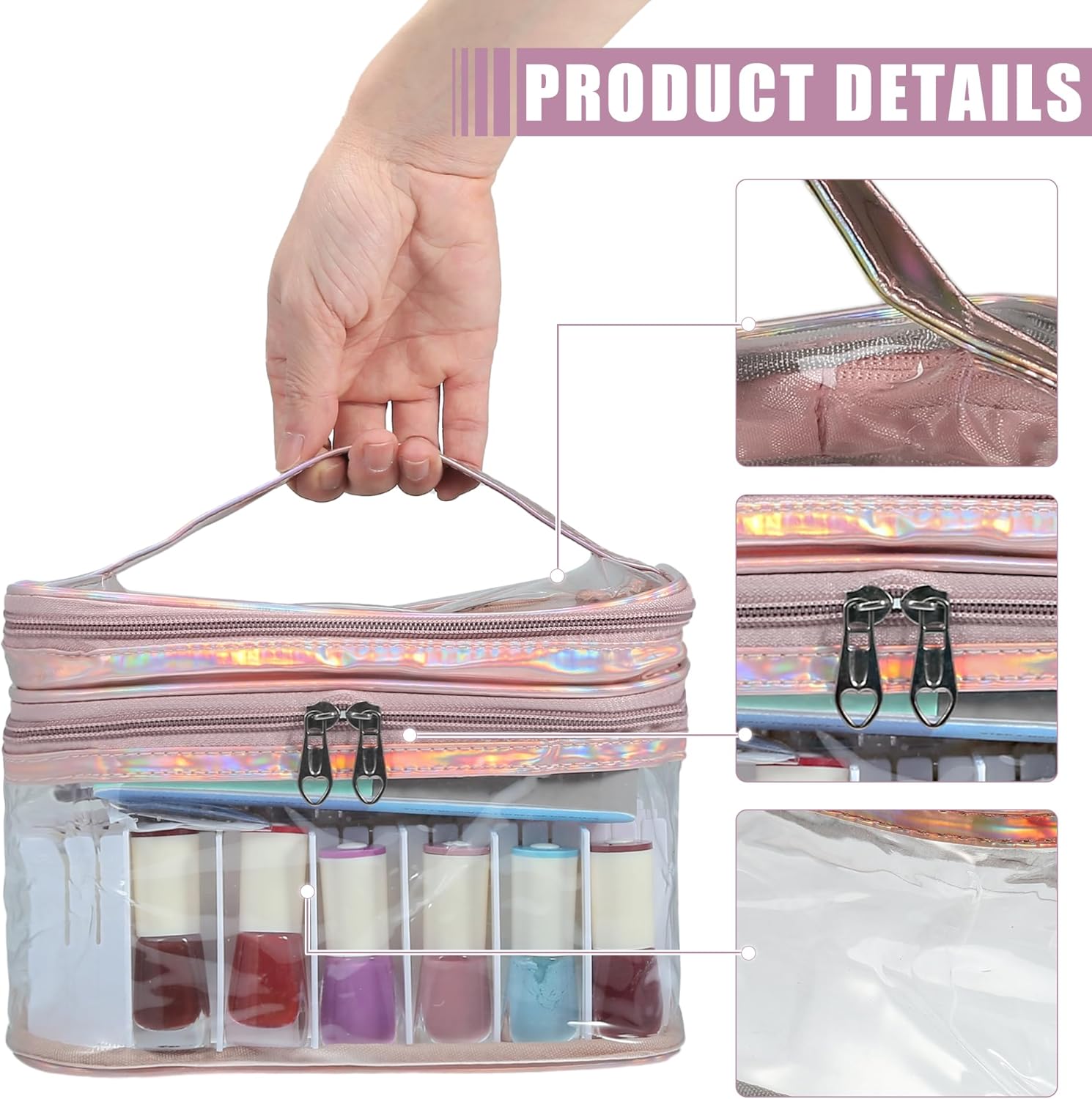 DURABLE: Nail Tool Bag is made of PU and plastic, soft touch, neat stitching and practical, reinforced top handle is convenient for carrying your nail bottles everywhere stably