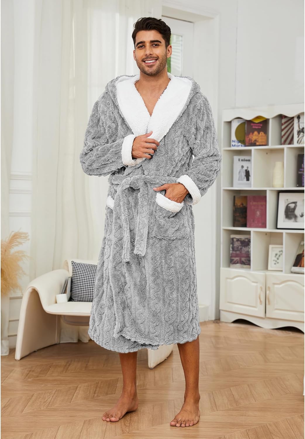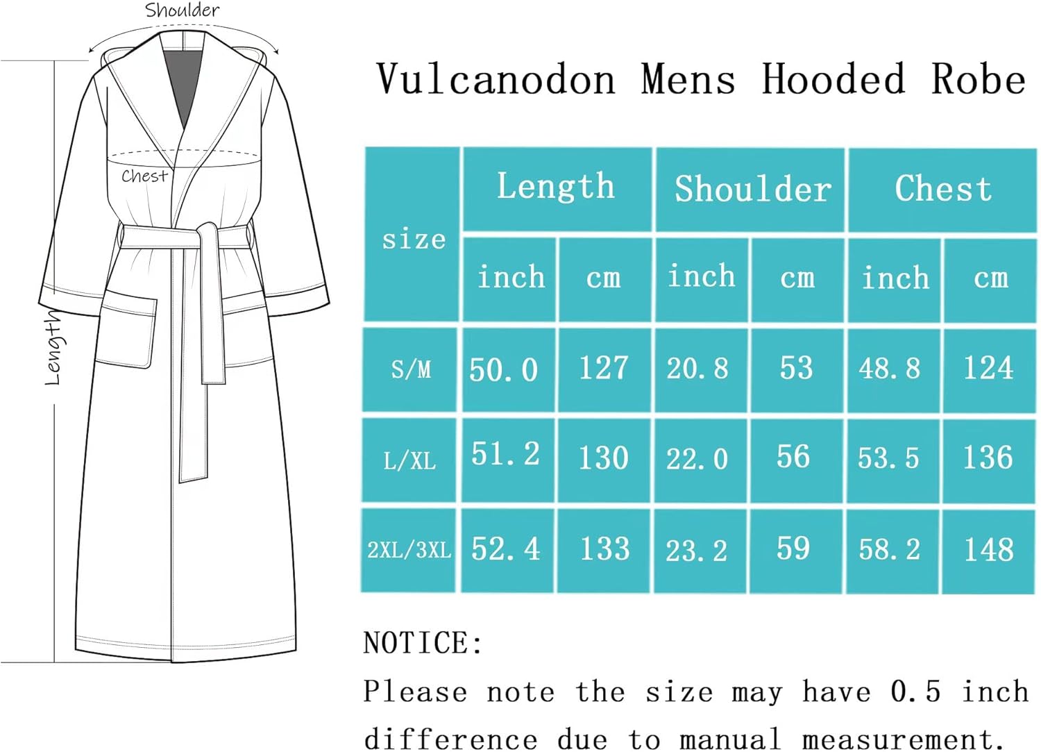 Vulcanodon Mens Robe with Hood,Full Length Plush Robe for Men Thick Fleece Bathrobe