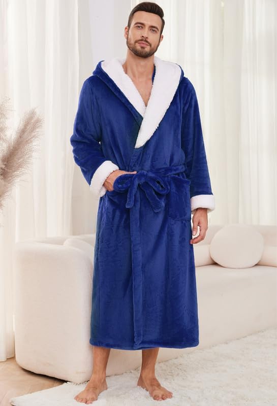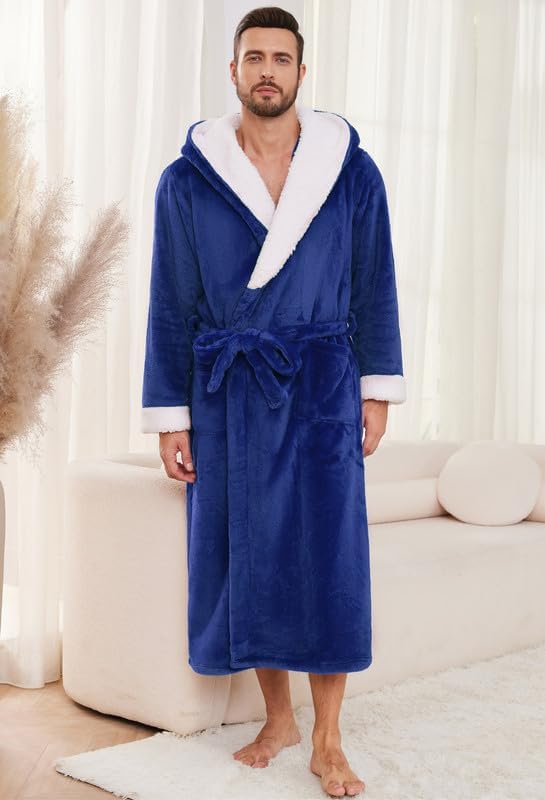 Vulcanodon Mens Ultra Soft Plush Bathrobe with Hood, Warm Fleece Robe with Pockets Spa Robes for Men Cozy Fluffy Fuzzy