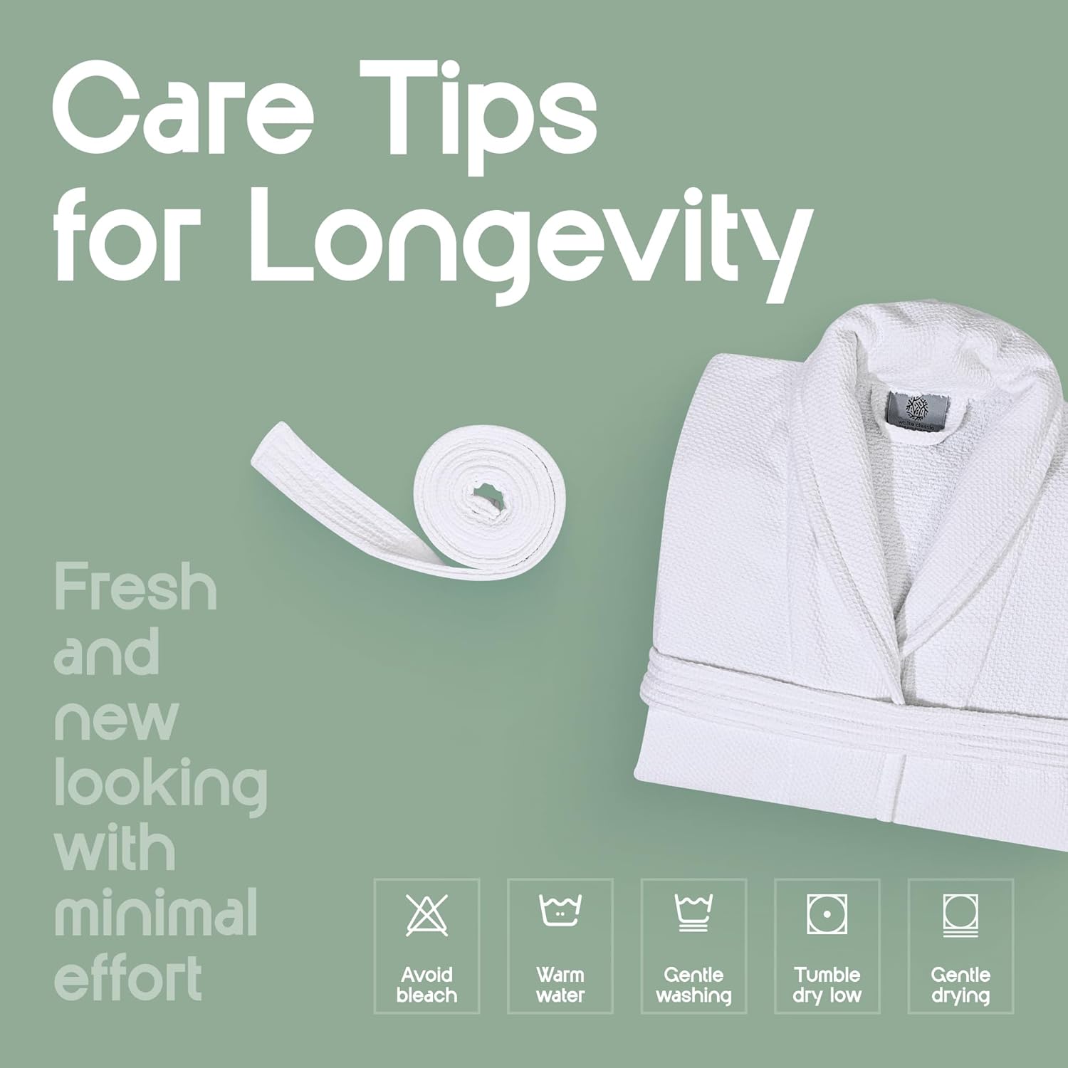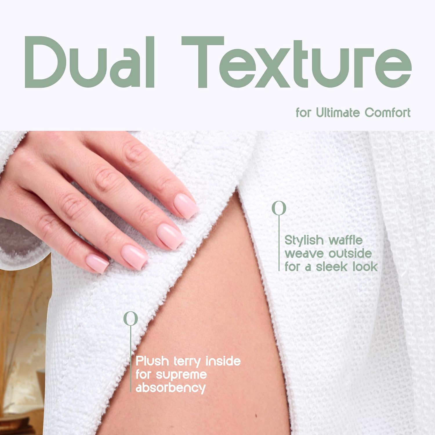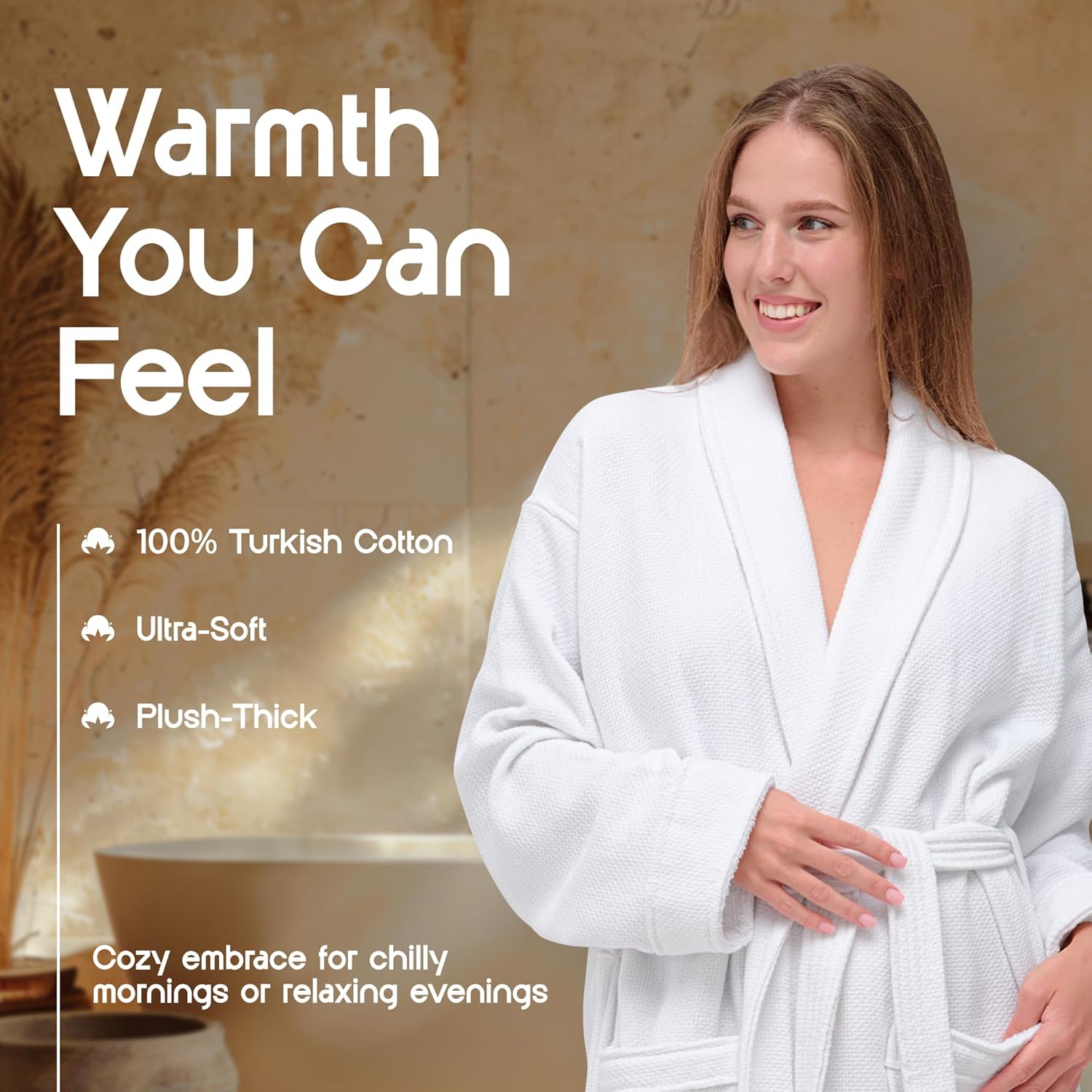 White Classic Waffle Bathrobe for Women, Men, 100% Turkish Cotton, Luxury Terry Interior, Waffle Exterior, One Size Fits Most