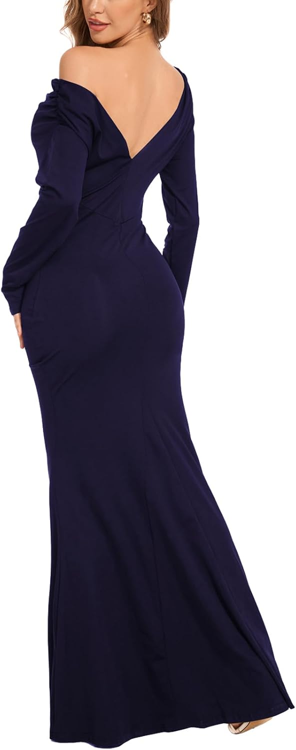 women’s long evening prom gown elegant sleeveless mermaid dress formal off shoulder bodycon party