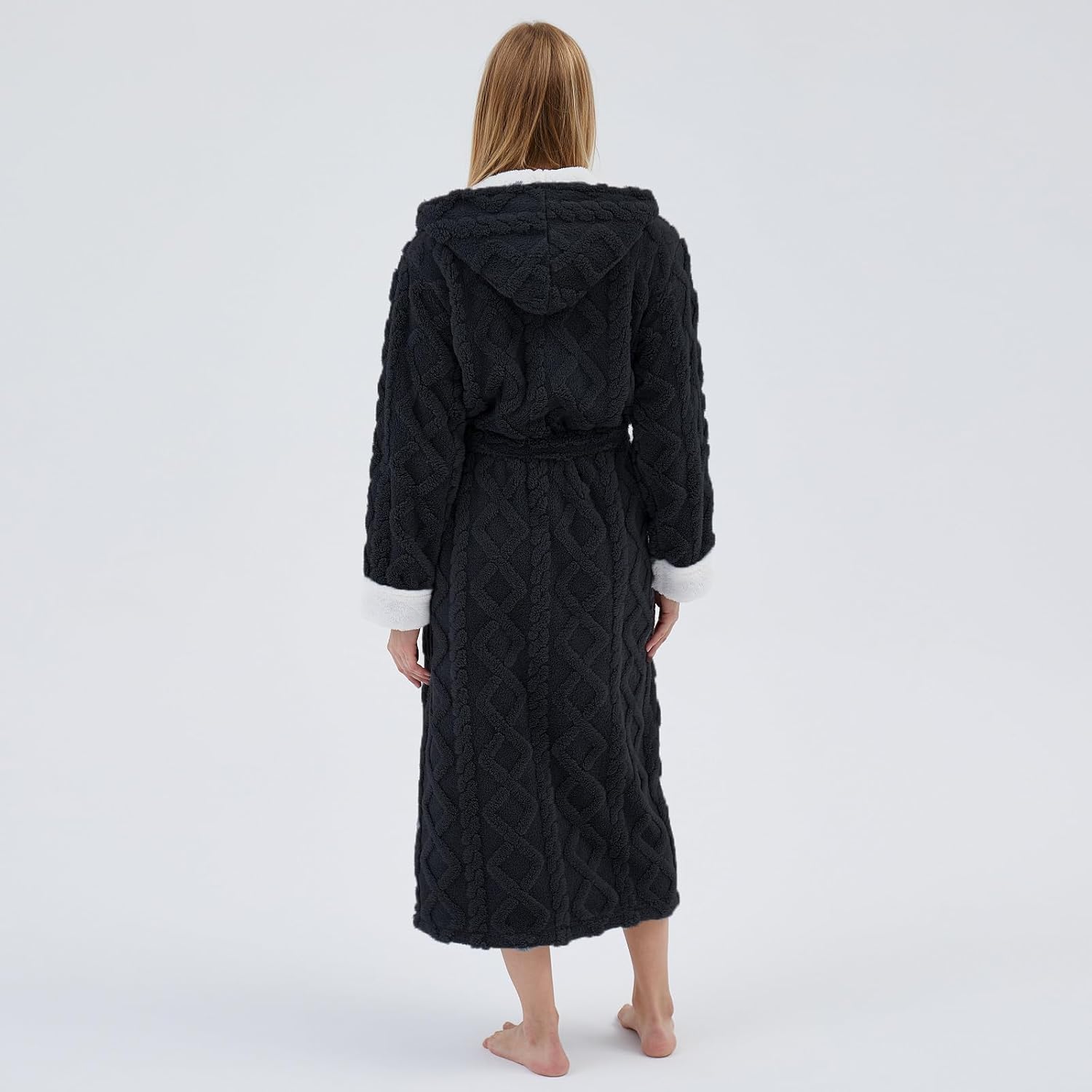 Women’s Winter Hooded Robes are made from high quality flannel fleece.With fluffy plush,thick and loose,warm and soft.Great for taking a leisurely life after a hard working day.