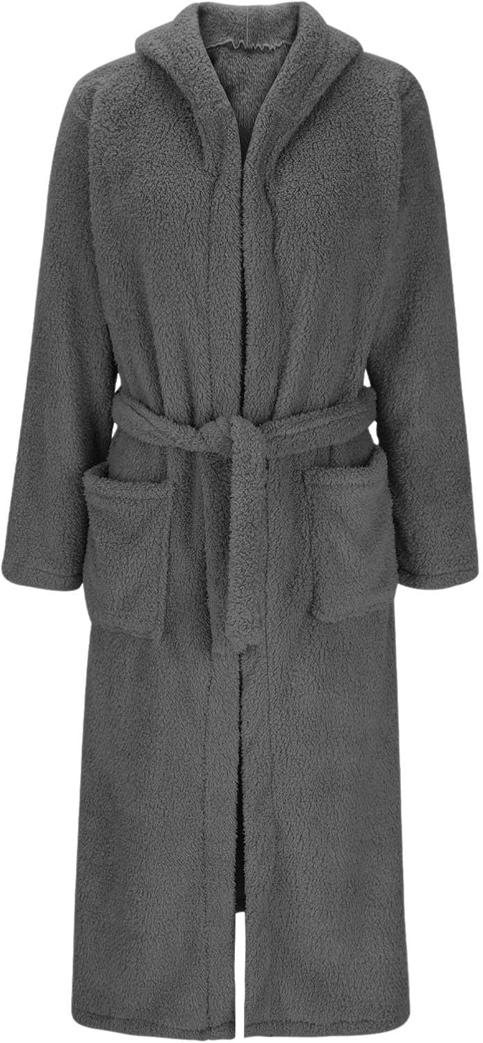 Womens Hooded Fleece Robe,Belted Soft Long Plush Bathrobe with Pockets,Lounge Winter Warm Fuzzy Spa Robes Nightgowns