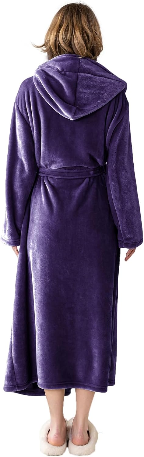 Women’s Hooded Long Bathrobe, Silky Soft Lightweight Plush Fleece Robe Warm and Comfy to Wear
