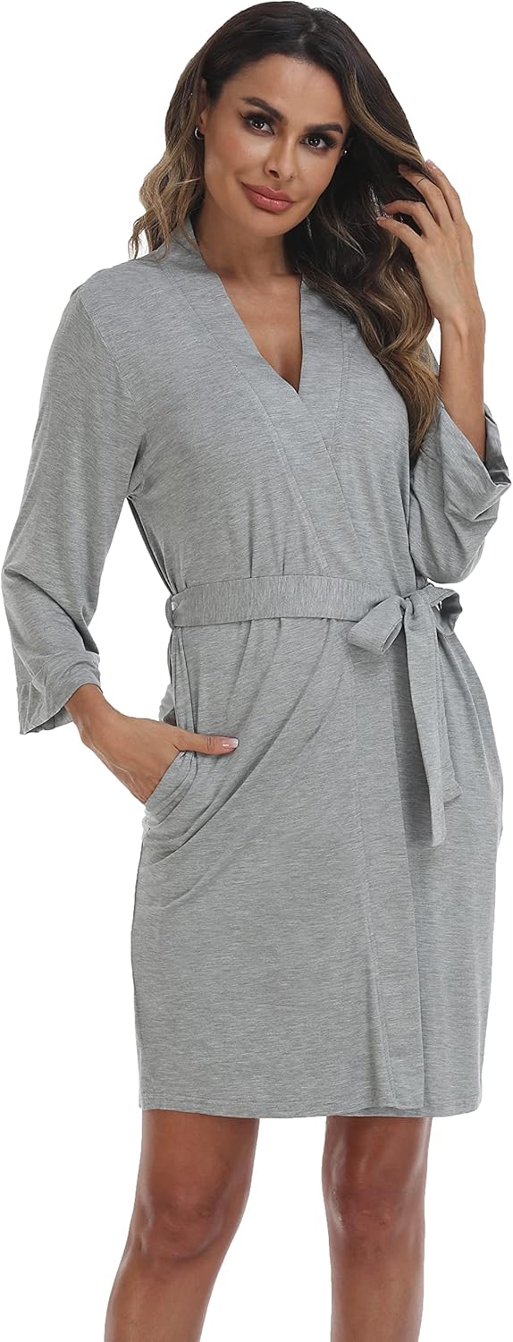 Women’s Kimono Robe Short Knit Bathrobe Soft House Sleepwear Lightweight Ladies Loungewear