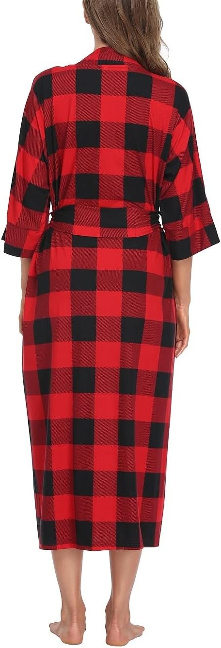 Women’s Long Nightgown Soft Robes Knit Kimono Lightweight Loungewear Bathrobe Rayon Sleepwear Pajamas with Pockets