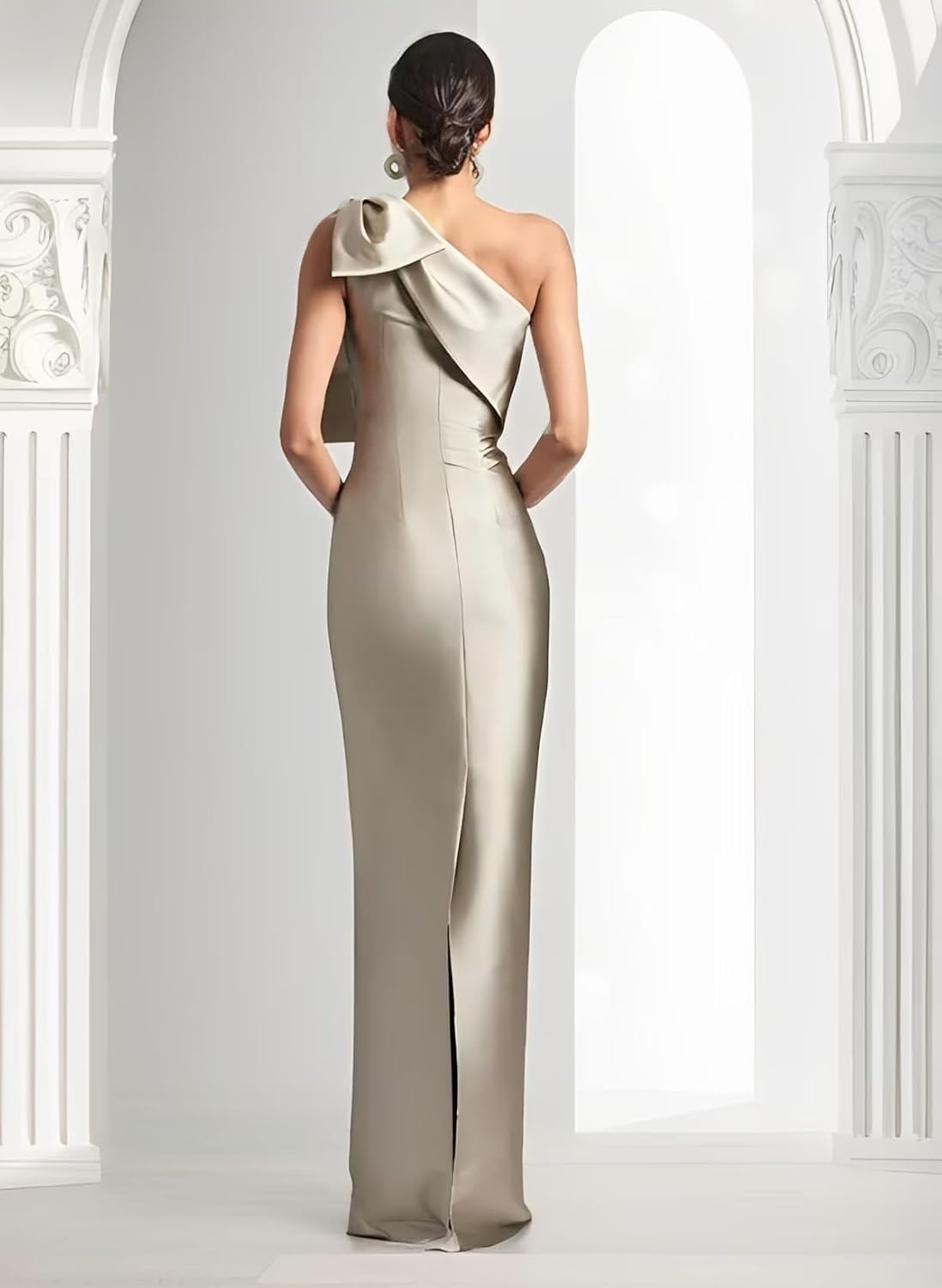 Women’s One Shoulder Satin Bridesmaid Dresses Long Back Split Evening Prom Formal Mother Gowns