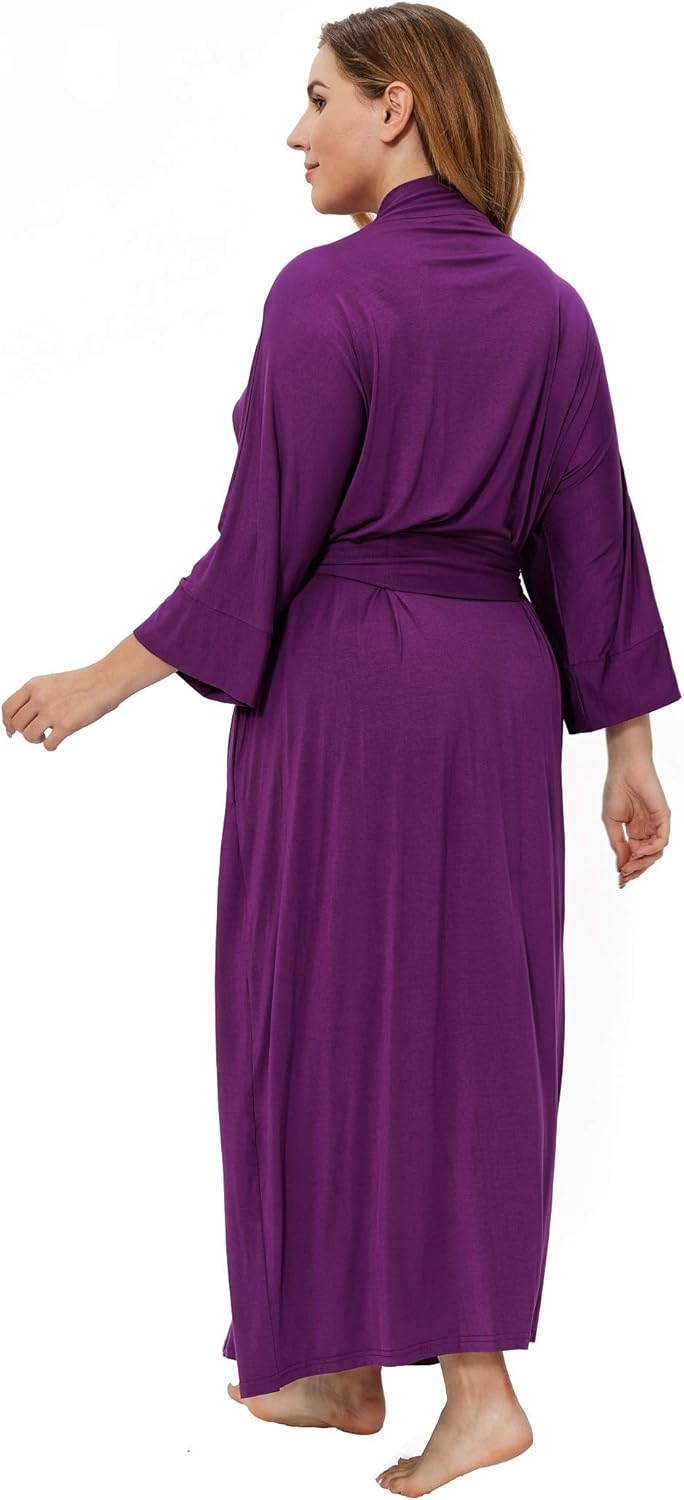 Women’s Plus Size Kimono Robes Long Knit Bathrobes Lightweight Soft Sleepwear V-Neck Ladies Loungewear
