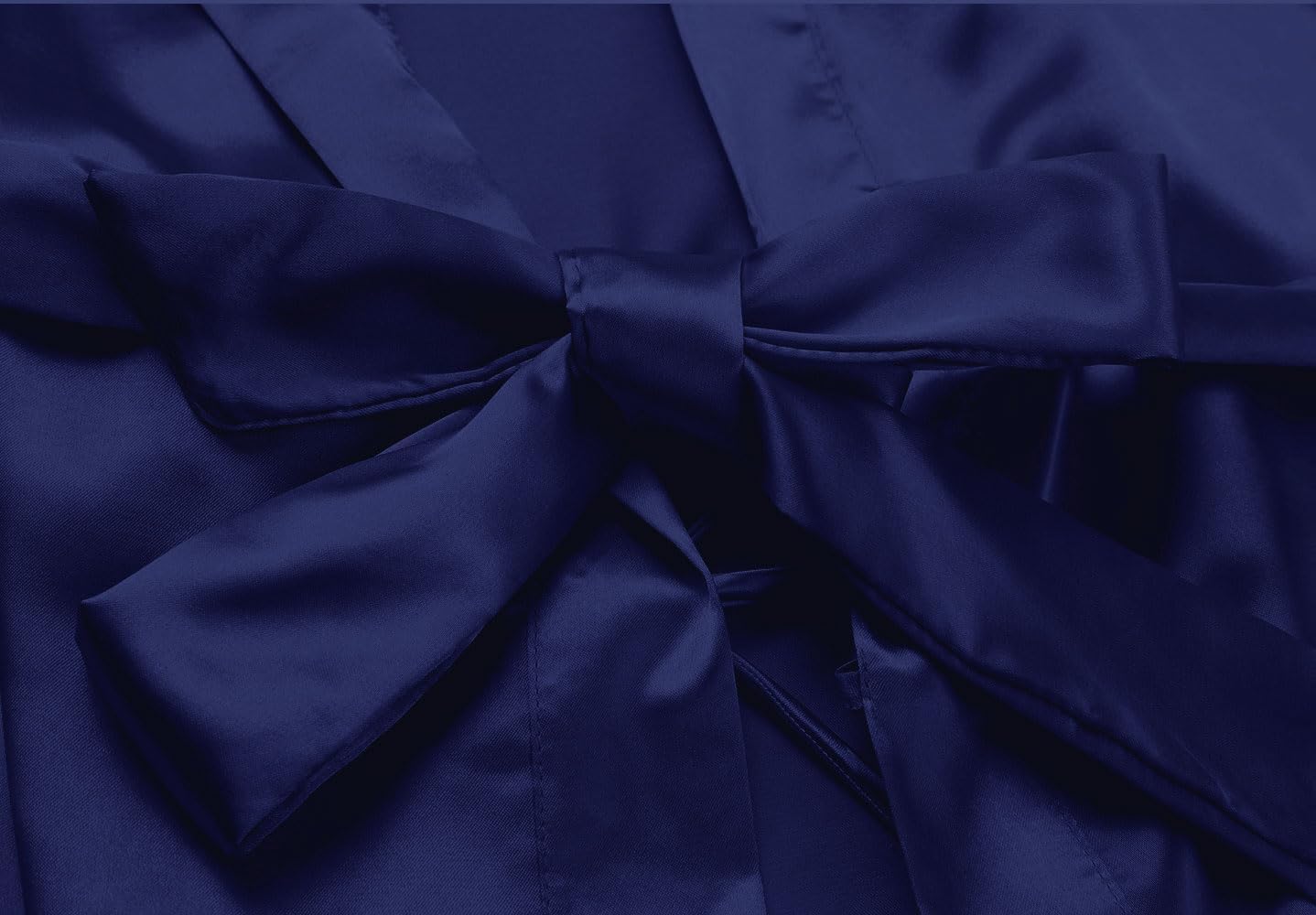 Women’s Silk Wedding Robe Sexy V-Neck Kimono Robe Silky Bridesmaid Bathrobe House Coat