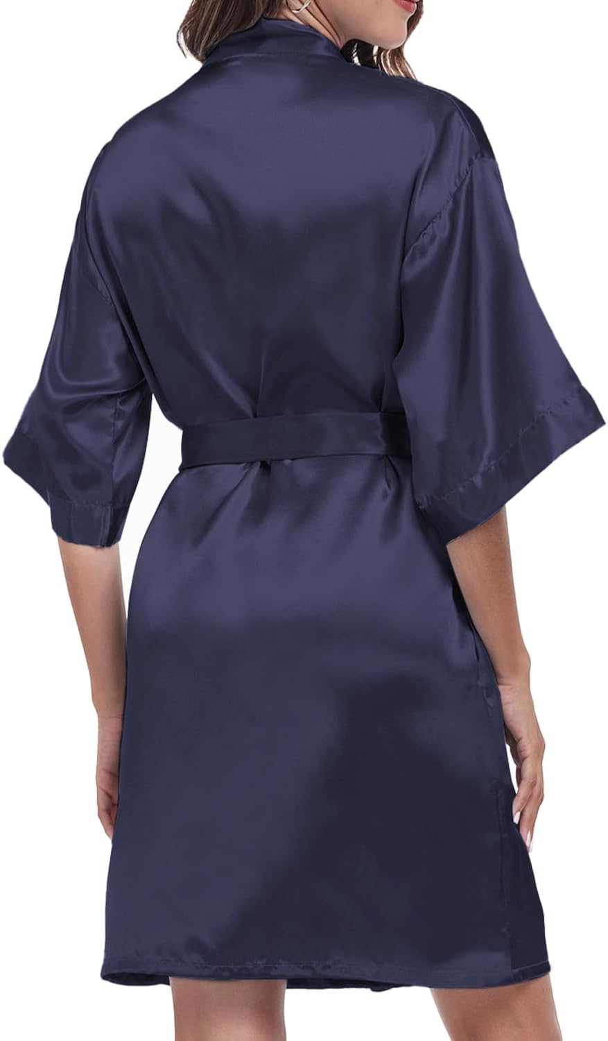 Women’s Satin Robe Short Silky Bathrobes Bridesmaid Bride Wedding Party Robes Sexy Kimono Sleepwear with Pockets