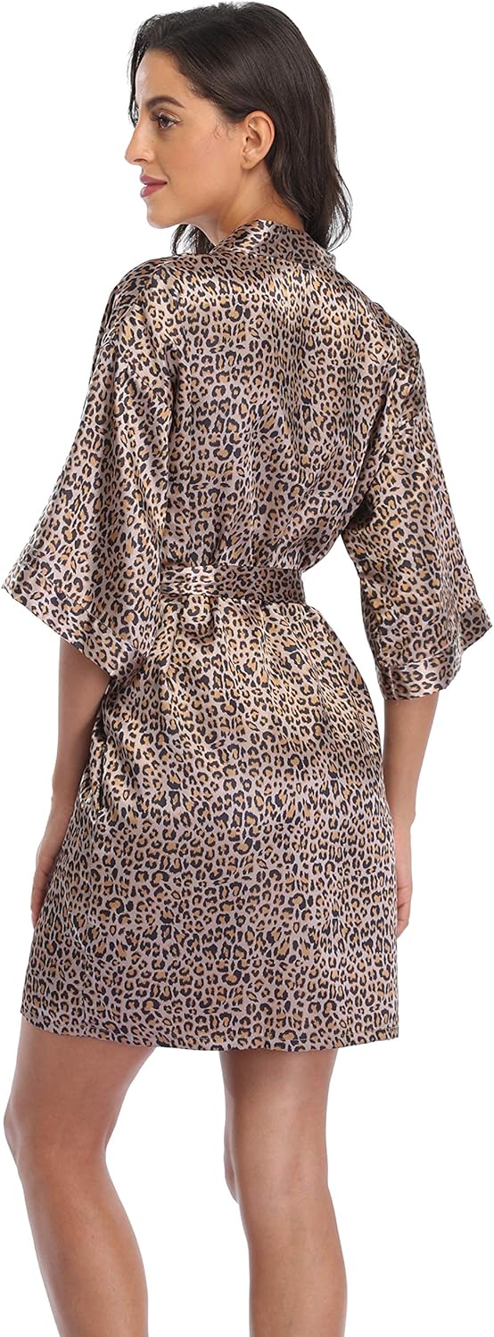 Women’s Satin Kimono Robes Bridesmaid Wedding Robe Silky Bathrobe Lightweight Sleepwear Short Summer Robe Loungewear