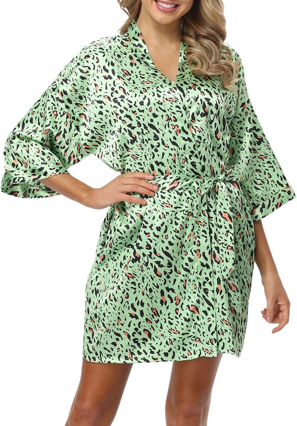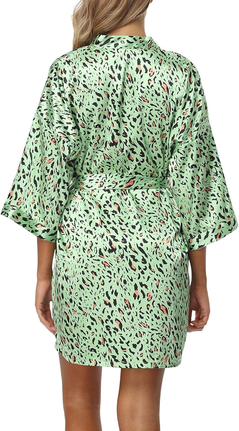Women’s Short Satin Kimono Robe Dressing Gown Getting Ready Robe