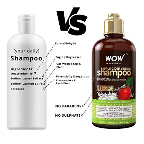WOW Apple Cider Vinegar Shampoo and Hair Conditioner Set Increase Gloss, Hydration, Shine, Reduce Itchy Scalp, Dandruff & Frizz, No Parabens or Sulfates, All Hair Types, 2 x 16.9 Fl Oz 500mL