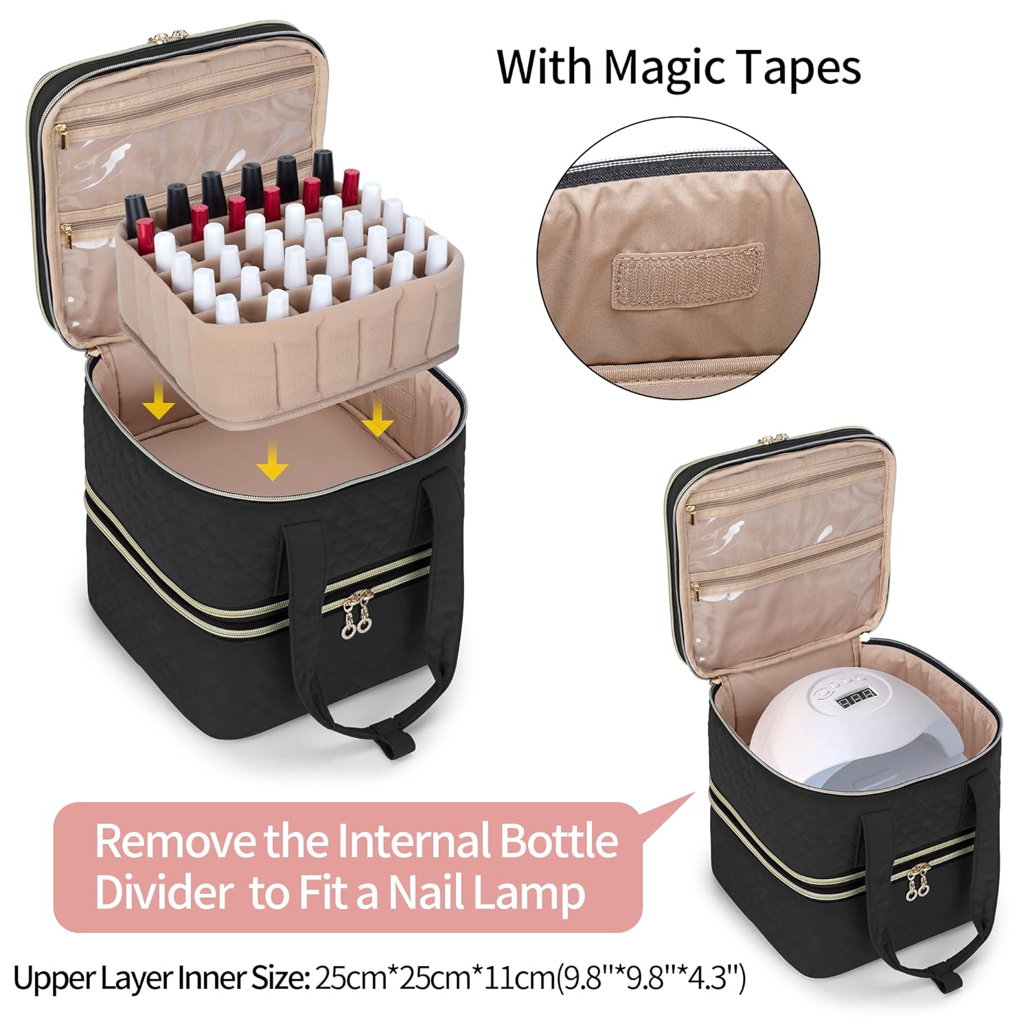 Yarwo Nail Polish Organizer Case Holds 72 Bottles (15ml/0.5 fl.oz), Detachable 3 Layers Nail Polish Storage Bag with Removable dividers for Nail Lamp and Nail Art Manicure Tools, Black (Bag Only)