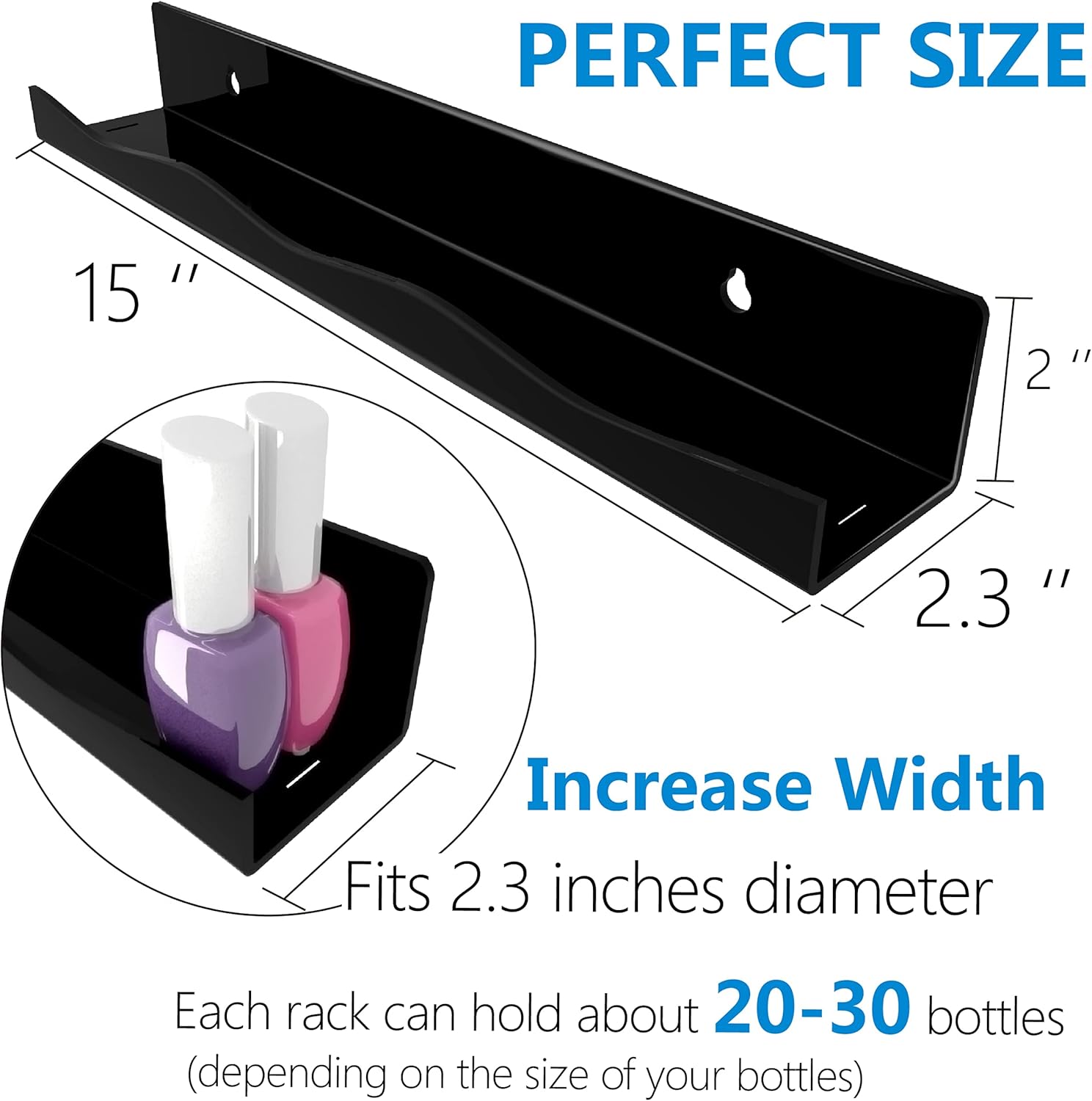 YMVV Black Acrylic Nail Polish Wall Racks,15″ Increased Width Black Wall Mounted Shelves Nail Polish Organizer, Sunglasses Essential Oil Storage Shelf Display 6 Pack