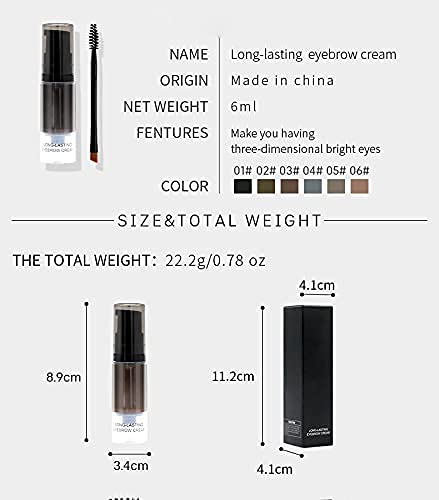 Ynzon Eyebrow Cream Gel Long Lasting Waterproof (Wiht Brush) Set Eye Brows Makeup Yebrow Dye Enhancer Eyebrow Tint Brown Dark Brown Black (02#)