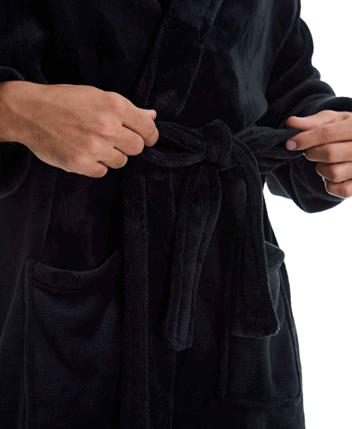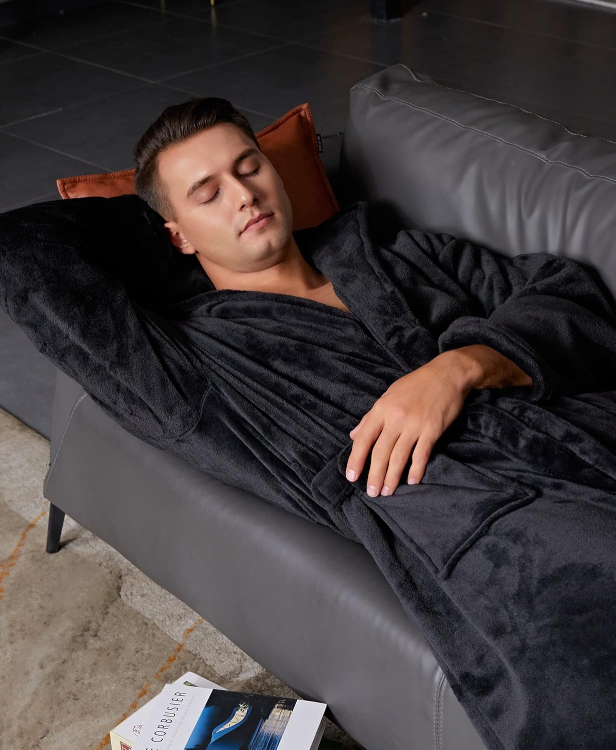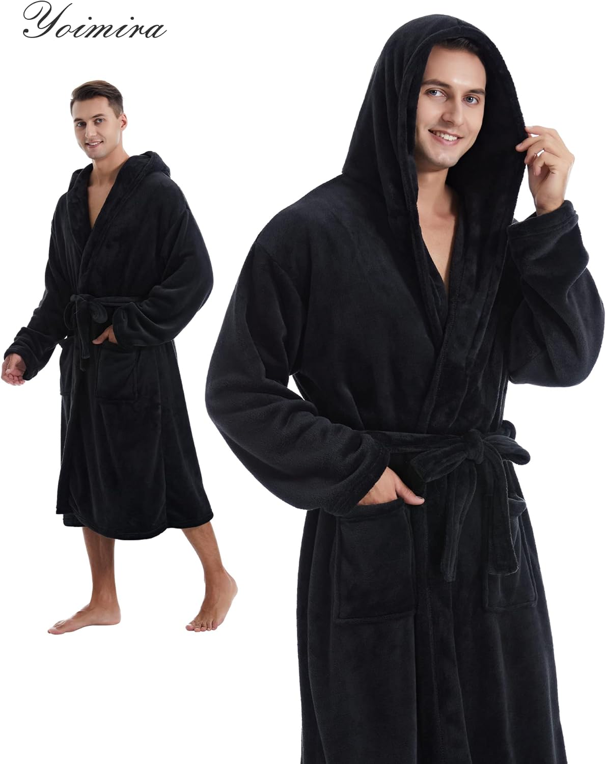 Yoimira Mens Robe with Hood, Plush Robe for Men Long Fleece Bathrobe Soft and Warm